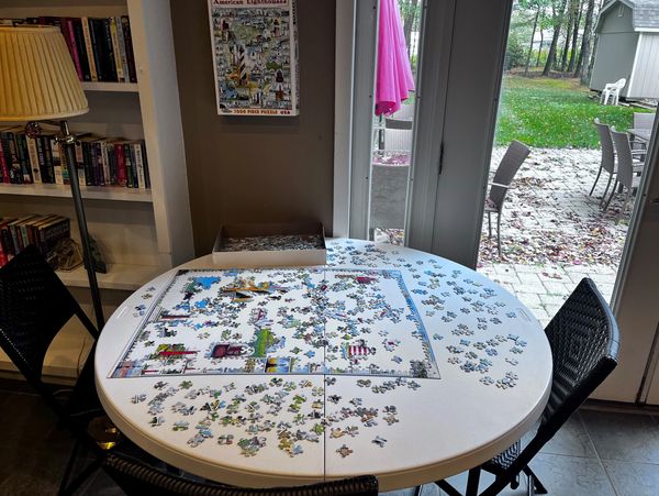 Great progress is being made on our community puzzle! Stop by and put a few pieces in place while you wait on laundry or pick up your mail.
