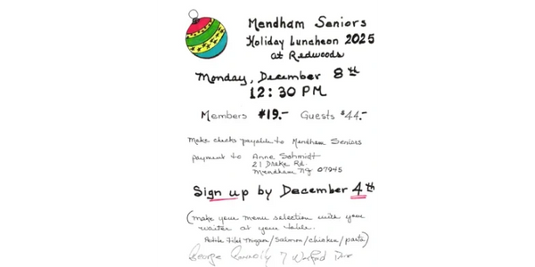 RSVP to dguida@mendhamtownship.org or 908-477-4438